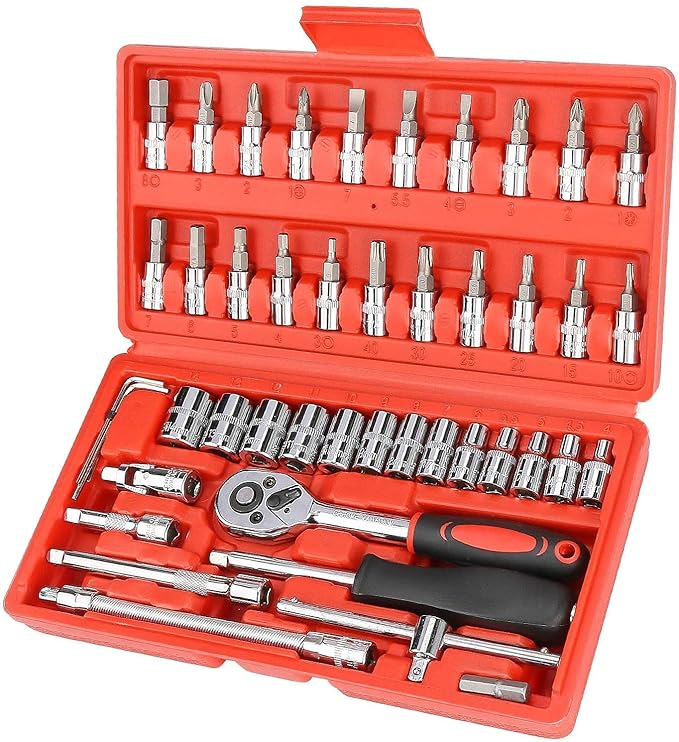 Neobrandbucket-Zaptec 46 Piece 1/4″ Socket Set Goti Pana with Ratchet Wrench For Car, Bike, Cycle Repairing, DIY Projects, Home & Automobile Vehicle Service